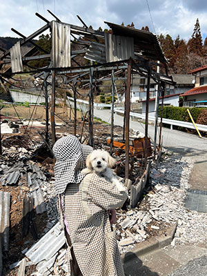 大船渡市の山火事は、 煙突から出た火の粉が原因ではないかと言われているが、 2月の降水量が平年の6%と過去最も少なかった時期に発生し、 発生当日は最大瞬間風速18.1mの強い北風が吹いていたため 延焼が拡大した。 私たちが出来ることは、何だったのだろうか? (2025年6月 岩手県大船渡市にて)  |